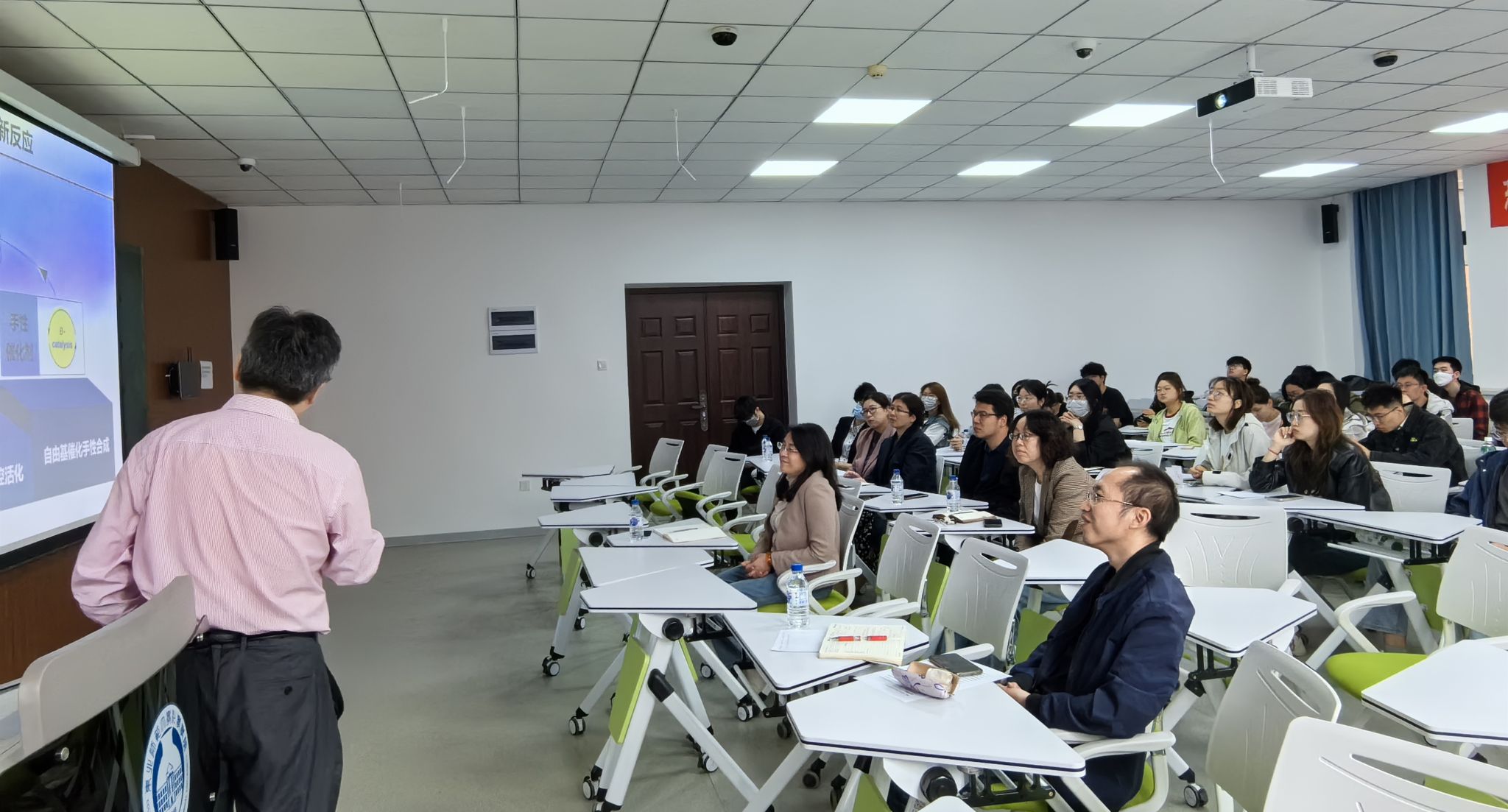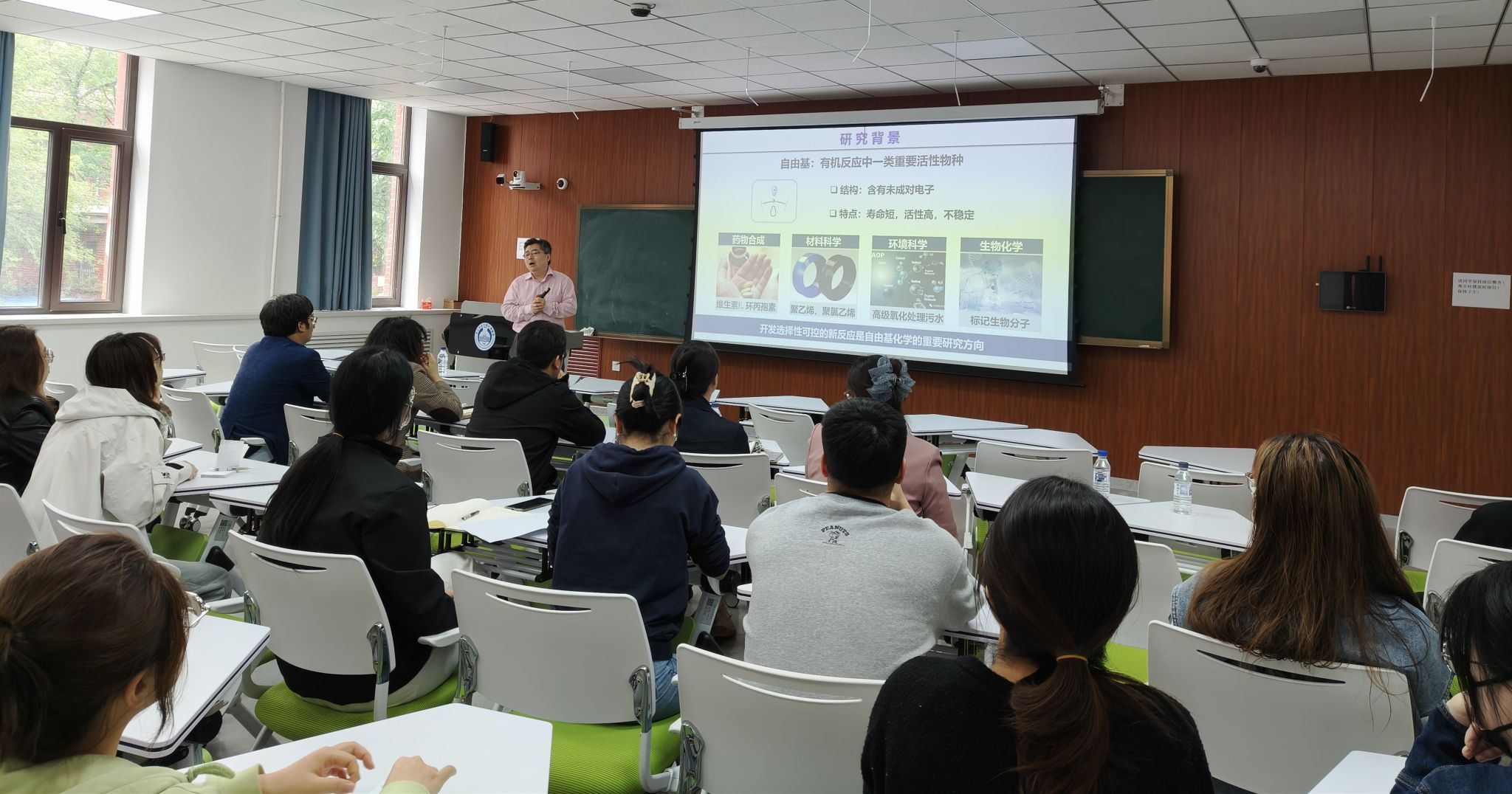 汪义丰教授介绍了自由基反应的发展现状,指出硼自由基化学的挑战和“偏见”,并以硼自由基化学为主线,介绍了其课题组围绕极具挑战性课题开展的研究工作,即通过调控硼自由基的结构和性质,实现的系列活化和构建化学键的新反应和精确控制选择性的新模式。此外,汪义丰教授还分享了硼自由基催化炔烃不对称自由基转化方面的最新研究进展,指出从偶然发现到理性设计的重要性,为我们带来了一场精彩的学术盛宴。报告内容深入浅出,严谨生动,拓宽了师生的学术视野,获得了师生的热烈反响。