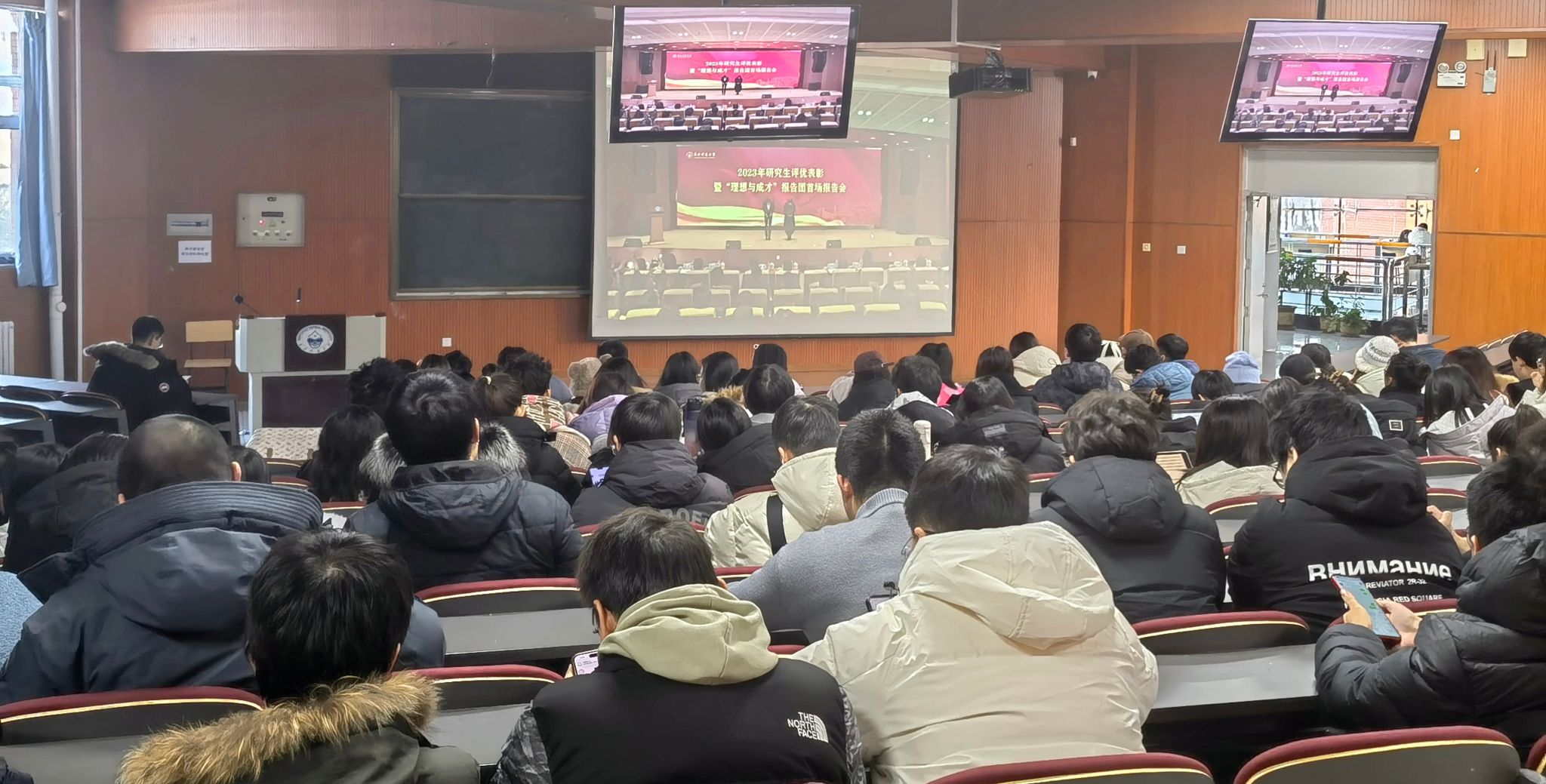 12月20日,我校2023年研究生评优表彰暨“理想与成才”报告团首场报告会在学校惟真楼举行。