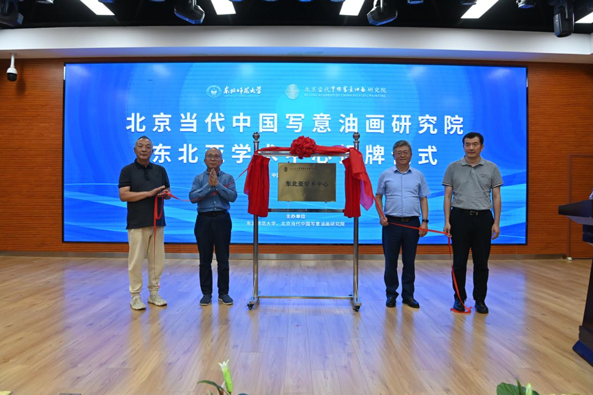 中国美术家协会主席、中央美术学院原院长范迪安,北京当代中国写意油画研究院院长王辉,院学术委员会主任杨参军,校党委书记兰恒斌,校长徐海阳出席会议,来自中国美术家协会、东北地区各省级美术家协会、中央美术学院、中国美术学院、鲁迅美术学院、哈尔滨师范大学、大连艺术学院等社会团体和相关高校的80余名专家学者参加了揭牌仪式。王辉、杨参军、兰恒斌、徐海阳共同为北京当代中国写意油画研究院东北亚学术中心揭牌。徐海阳为中心主任王建国颁发聘书。活动由副校长魏民主持。
