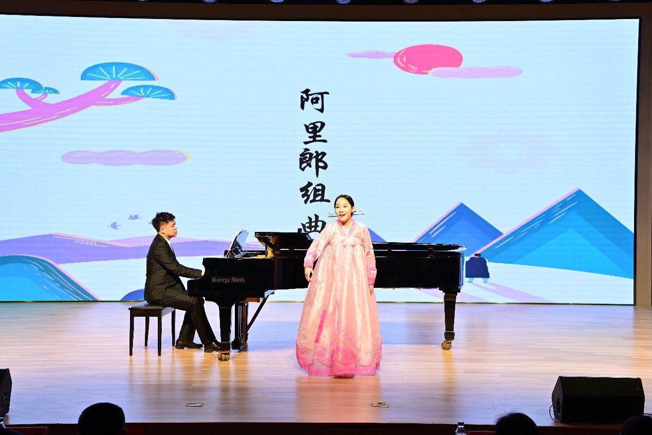 音乐会以钢琴独奏《努玛阿美》拉开序幕,各民族师生通过歌唱、舞蹈、朗诵、钢琴演奏等多种艺术形式,生动诠释中国传统文化,展现中华民族多元一体的文化魅力。先后表演了声乐演唱《祖国,慈祥的母亲》、独舞《山的那边》、钢琴演奏《四手联弹——牧歌》、声乐演唱《我爱你中国》、钢琴独奏《音诗》、声乐演唱《阿里郎组曲》、群舞《芳刀寒梅》,还邀请到附属小学学生表演群舞《少年志》。演员们用民族诗歌编织成跳动的音符,用民族文化演绎为动人的歌声,传递和表达了各族人民对祖国的热爱和民族团结之情。音乐会在朗诵与合唱《我和我的祖国》中落下帷幕。