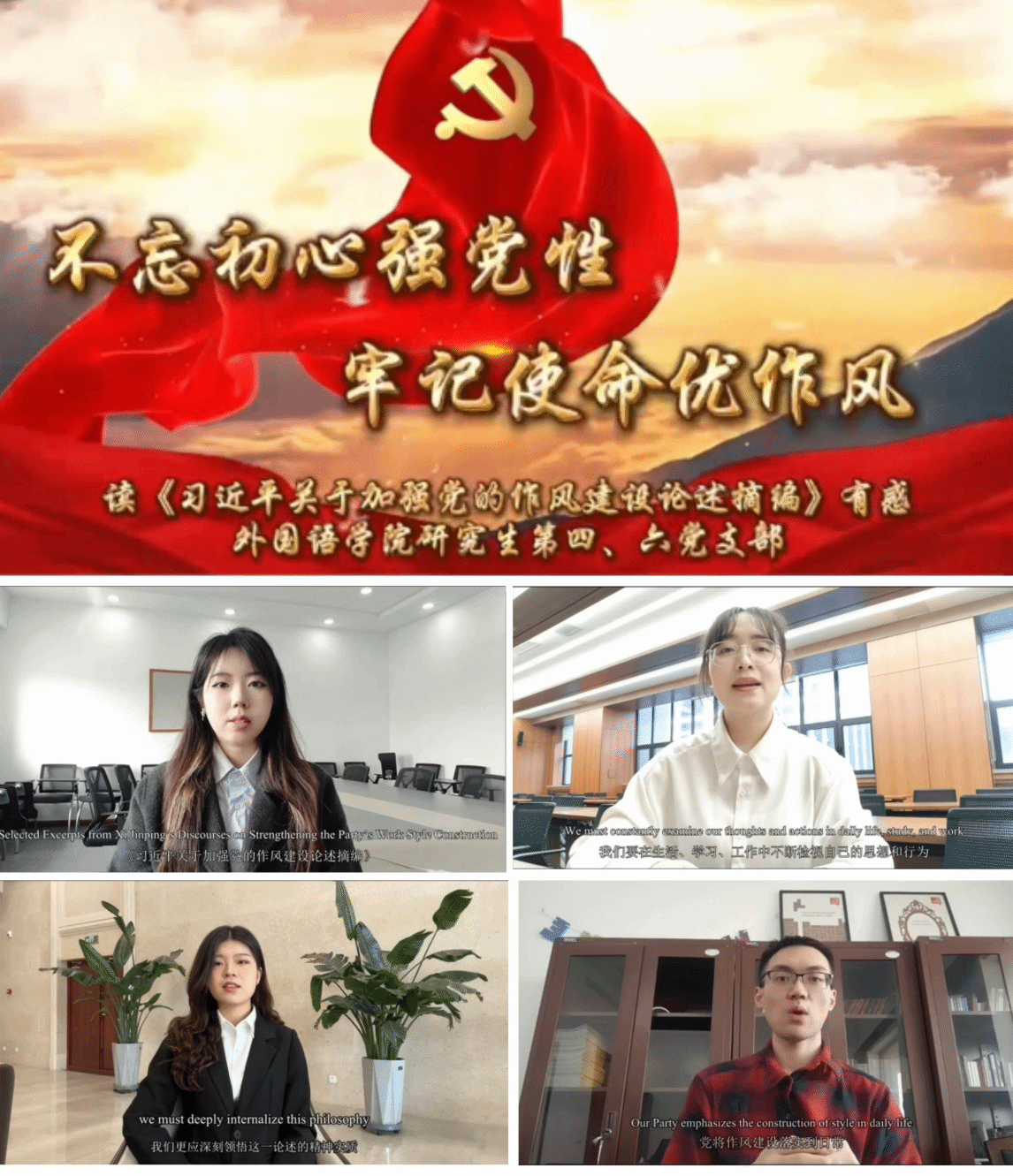 为扎实开展深入贯彻中央八项规定精神学习教育,外国语学院党委紧紧围绕立德树人根本任务,坚持以党建为引领,充分发挥学科特点与外语优势,深化探索“党建+外语”协同育人模式,推动学习教育入脑入心、见行见效。在学院党委的统一部署下,近日,研究生党支部开展了“强党性,优作风”多语种读书会,以作风建设引领研究生党支部高质量发展,努力将学习成果转化成青年锤炼党性、夯实立身之本的工作实效。